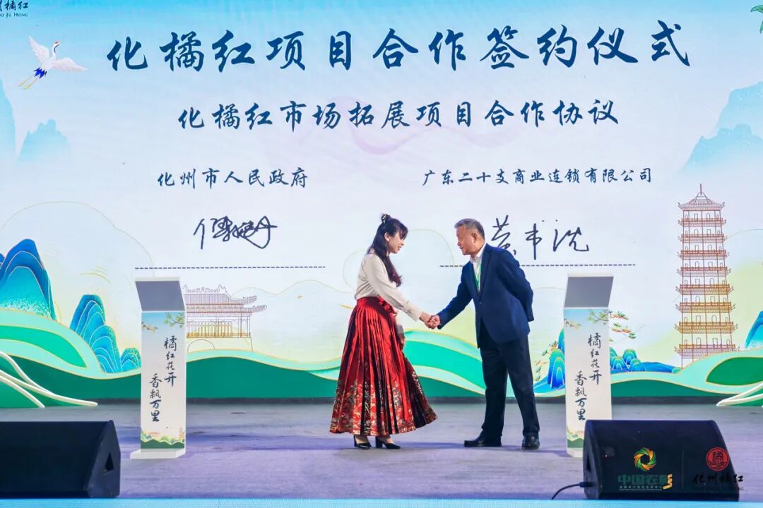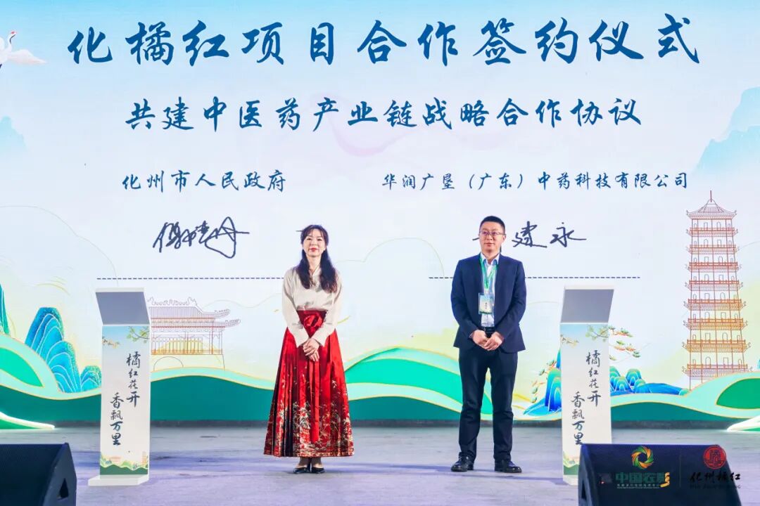 如今化州更加注重“业”的带动、“人”的参与、“果”的销售、“根”的传承。紧握化橘红产业发展新机遇,推动全产业链发展,让化橘红产业步入高质量发展快车道。活动现场,中共化州市委副书记傅婕丹与广东粤烟投资管理有限公司副总经理黄书沈和华润广垦(广东)中药科技有限公司总经理邢建永分别签订了化橘红市场拓展项目合作协议和共建中医药产业链战略合作协议;化州市人民政府副市长王永光与化州市陈佰年农业有限公司总经理谢富瑞和梧州亿佳商业投资有限公司总经理王日荣分别签订了陈佰年化橘红产业项目合作框架协议和亿佳食品产业园项目合作框架协议;化州市人民政府副市长袁海峰与化州市国粤生态产业发展有限公司总经理陈晋夏和广东培林化橘红茶业有限公司总经理廖志略分别签订了化橘红健康产业园项目合作框架协议和培林化橘红产学研项目合作框架协议。