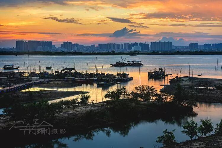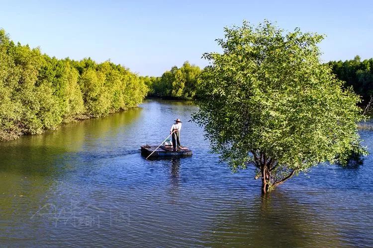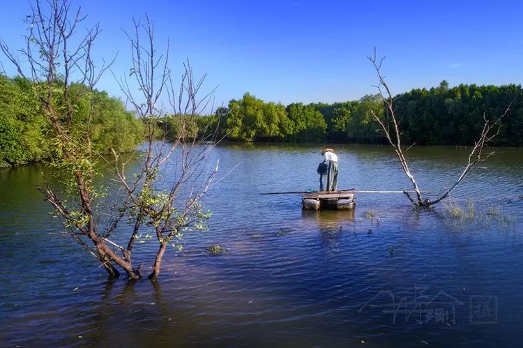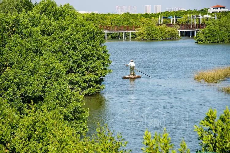 质朴的渔民在红树林间休闲地捕鱼,小船与红树林构成一幅美丽的人文画,给公园增添了一道亮丽的风景。