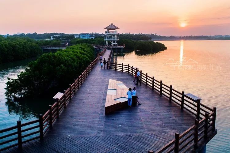 公园建设以一个环形的滨海栈道为游览主线,栈道时而穿梭在水网密布的红树林里。