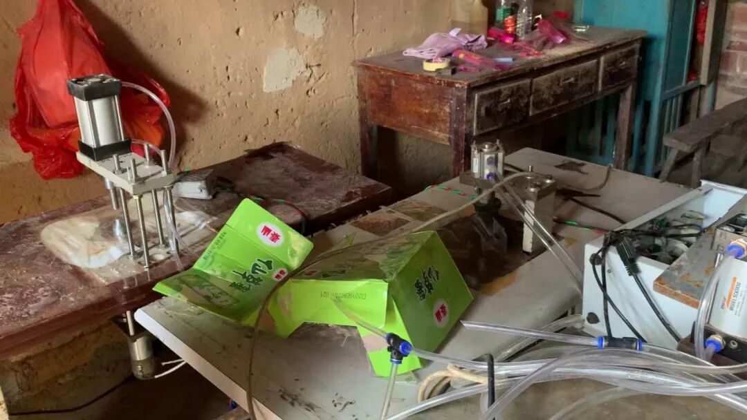 经连续20多天的循线跟踪、守候伏击,民警摸清了该团伙的基本架构,掌握了团伙成员郑某新(男,46岁,吴川市覃巴镇人)、林某君(男,42岁,吴川市王村港镇人)、陈某坤(男,50岁,吴川市王村港镇人)的相关信息并锁定了该团伙生产伪劣口罩窝点的位置。